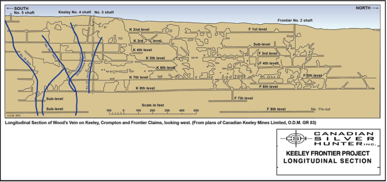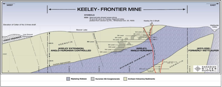 Historically the South Lorrain Township (Silver Centre) had produced a total of 23,338,906 oz of silver with 82% of this coming from the Keeley and Frontier Mines, and over 50% from the Keeley Mine itself